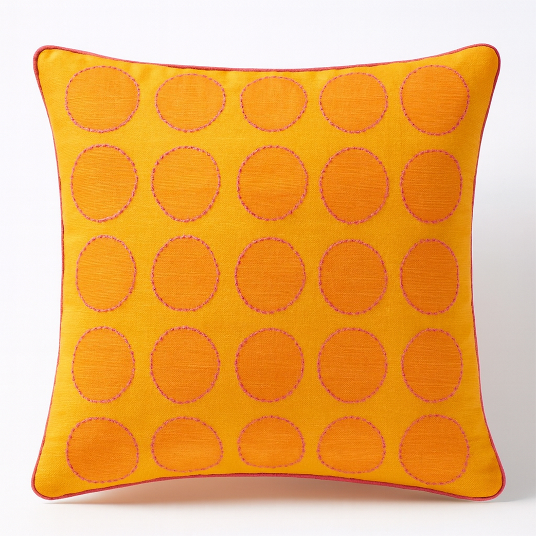Give your home a refreshing pop of colour with this Premium Handcrafted Yellow Polka Dot Cushion Cover. Designed with vibrant detailing and high-quality cotton fabric, this cushion cover brings warmth, cheerfulness, and artistic beauty to any living space. Whether you place it on your sofa, couch, bed, or lounge chair, it elevates your interior instantly.